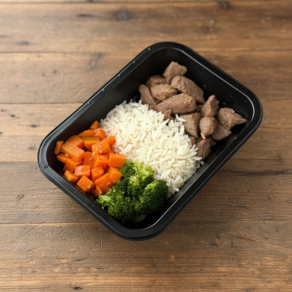 A Baby Beef com Arroz Branco, Brócolis e Cenoura | 350g é uma refeição nutritiva, equilibrada e prática, ideal para quem busca proteína de qualidade com acompanhamentos leves e saborosos.