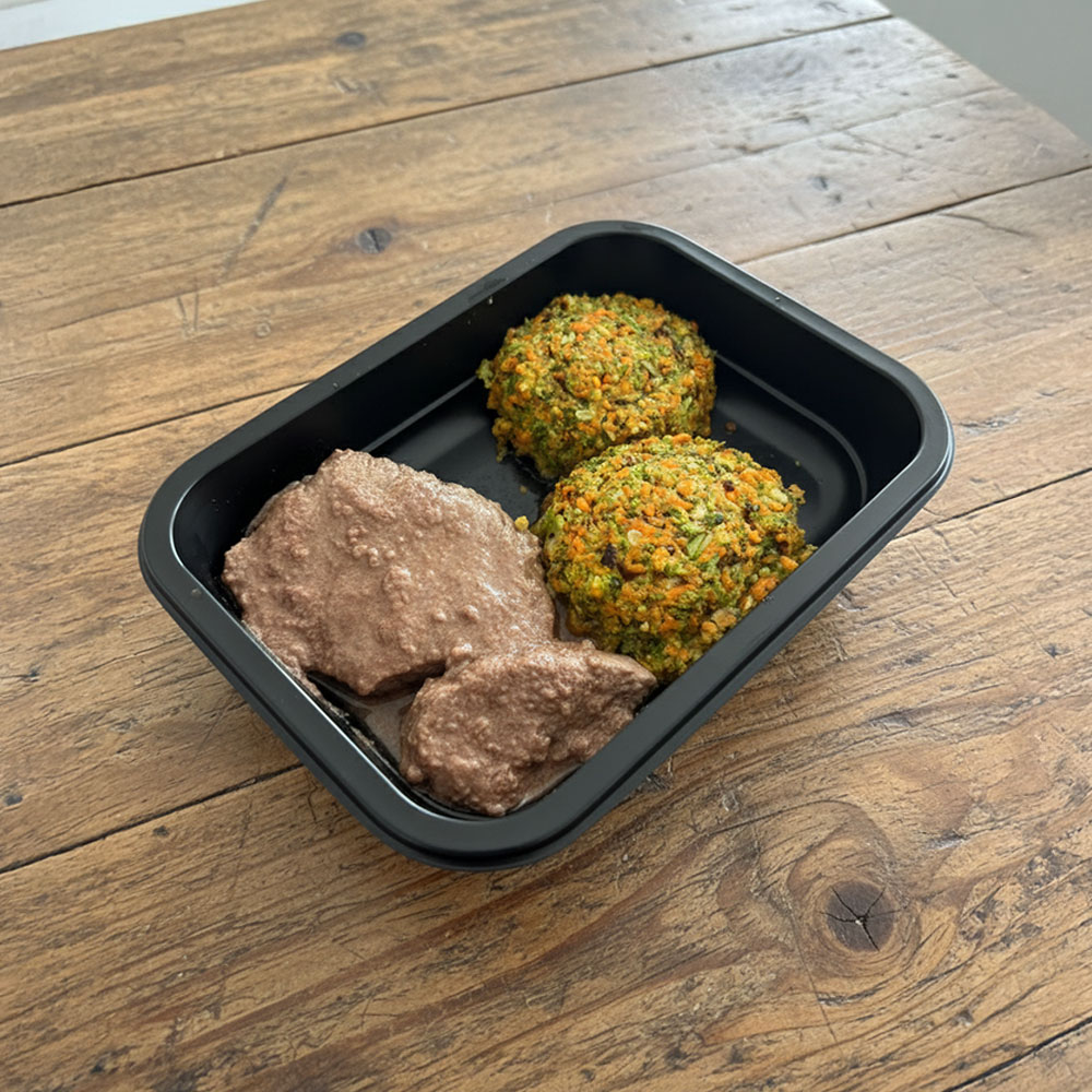 O Filé Mignon com Hambúrguer de Legumes | 200g é uma refeição prática, leve e nutritiva, ideal para quem busca proteína de alta qualidade combinada com vegetais. A junção do filé mignon grelhado com um hambúrguer de legumes cria um prato equilibrado, saboroso e perfeito para dietas com foco em saúde, saciedade e variedade nutricional.
