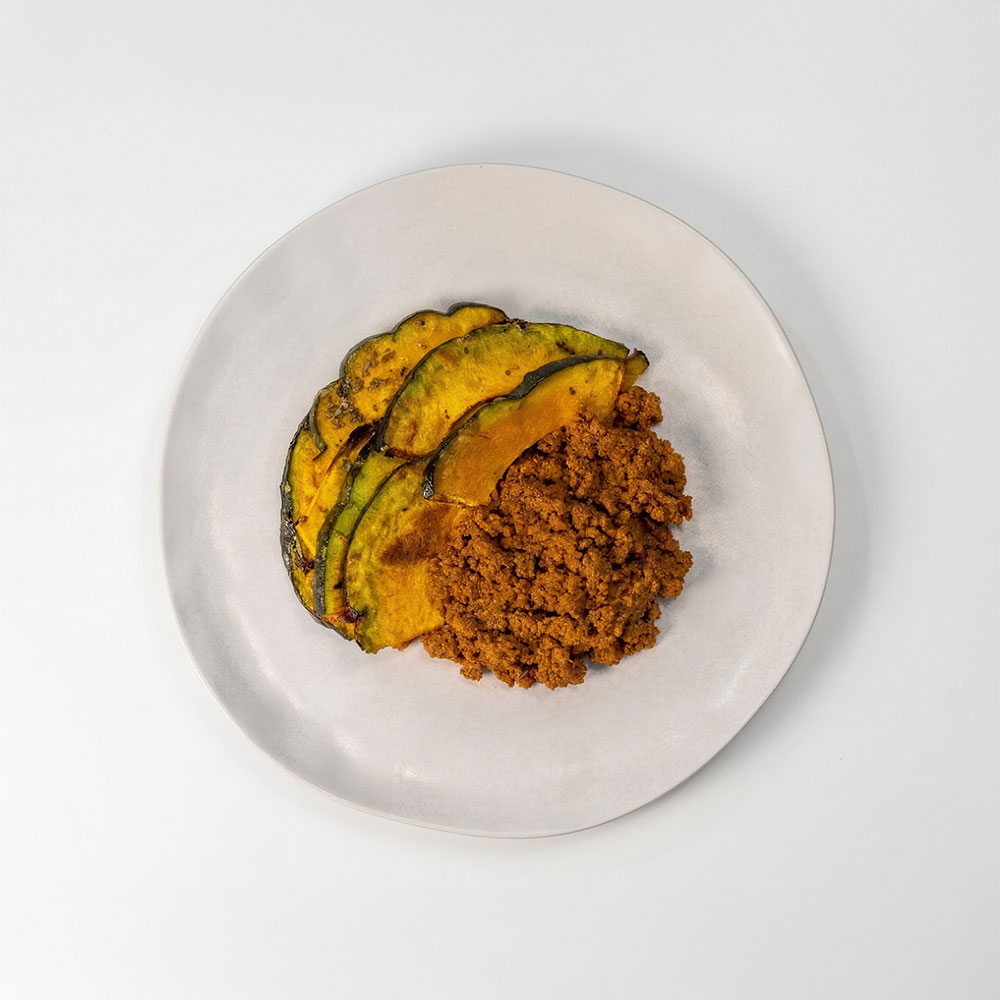150g de abóbora cabotiá assada, fonte natural de fibras e vitaminas.
